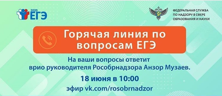 17.06.2020В Ситуационно-информационном центре Федеральной службы по надзору в сфере образования и науки в 18 июня в 10:00 пройдёт онлайн-трансляция горячей линии, посвященная проведению государственной итоговой аттестации в 2020 году.
