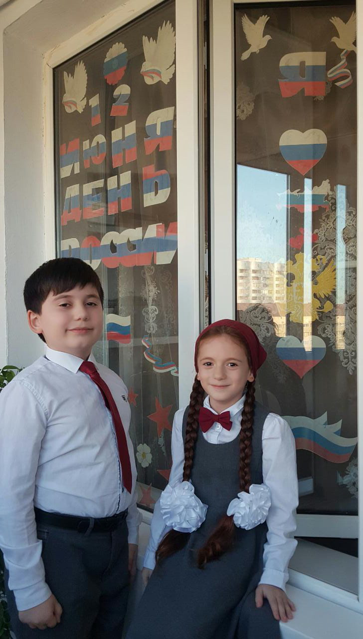 Сегодня, в преддверии этого праздника, обучающиеся 2 «В», 3 «А» и 4 «В» классов приняли активное участие в акциях «Триколор» и «Окна России».