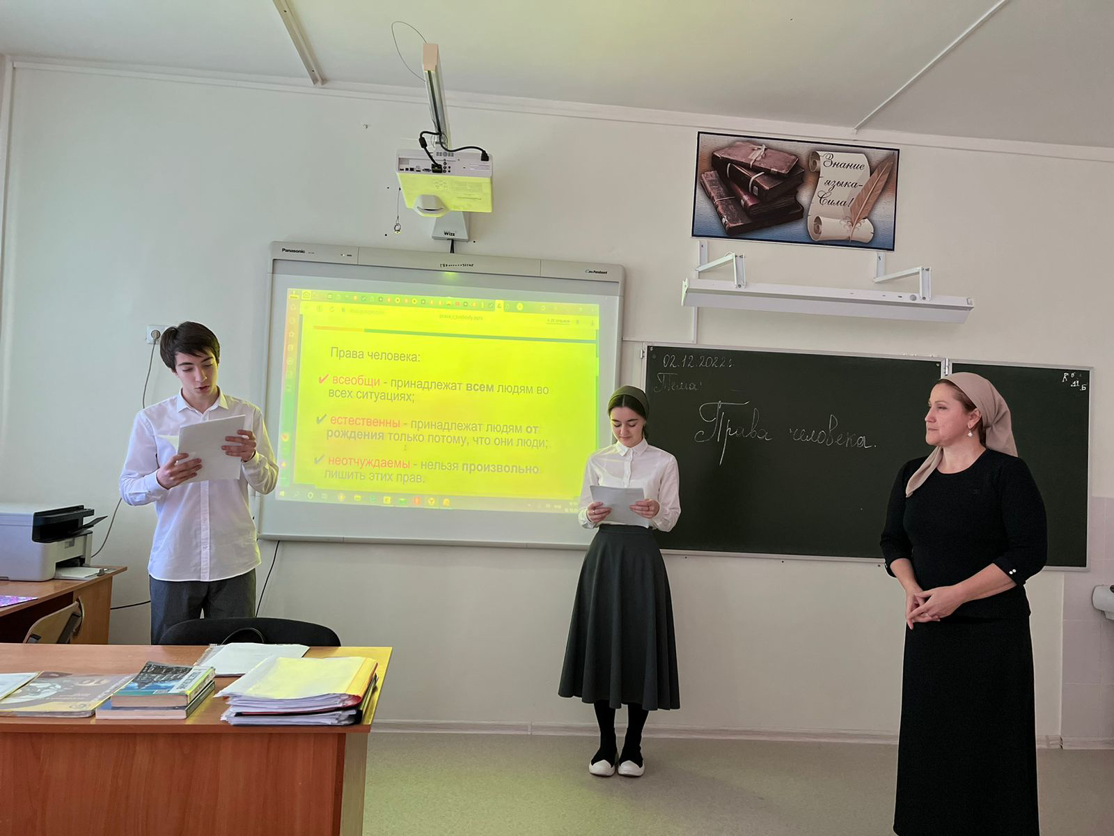 В преддверии празднования Международного дня прав человека, в МБОУ «Гимназия №12» г. Грозного проведён Всероссийский единый урок «Права человека».