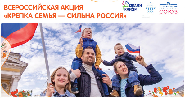 «Крепка семья - сильна Россия» – всероссийская акция, цель которой — создание условий в семье и в ДОО для воспитания гармонично развитой и социально ответственной личности на основе духовно-нравственных ценностей, отечественных исторических и национально-культурных традиций России.