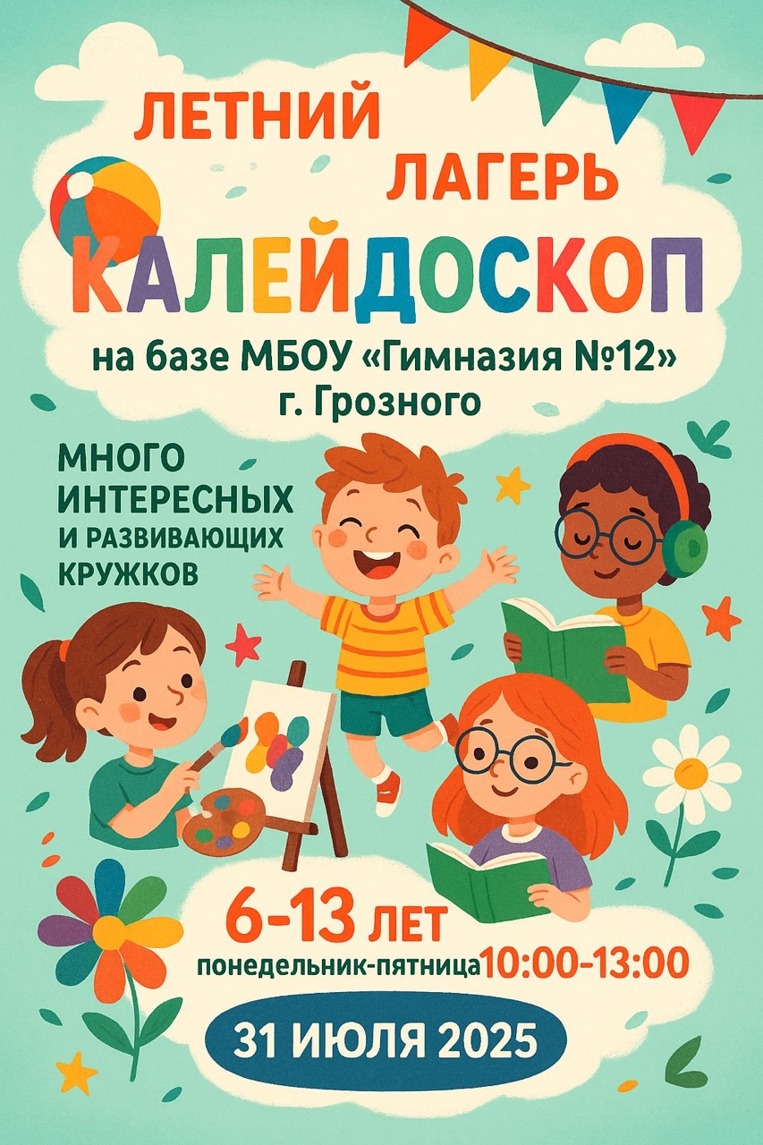 С радостью сообщаем вам, что 31 июля 2025 года в 10:00 состоится открытие летней площадки для учащихся МБОУ "Гимназия №12" г. Грозного и всех желающих.