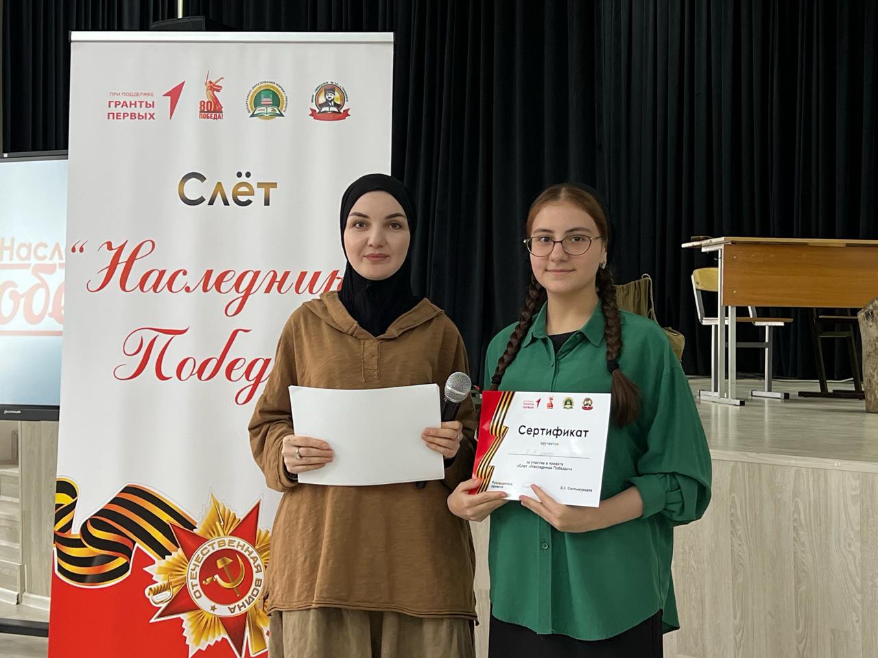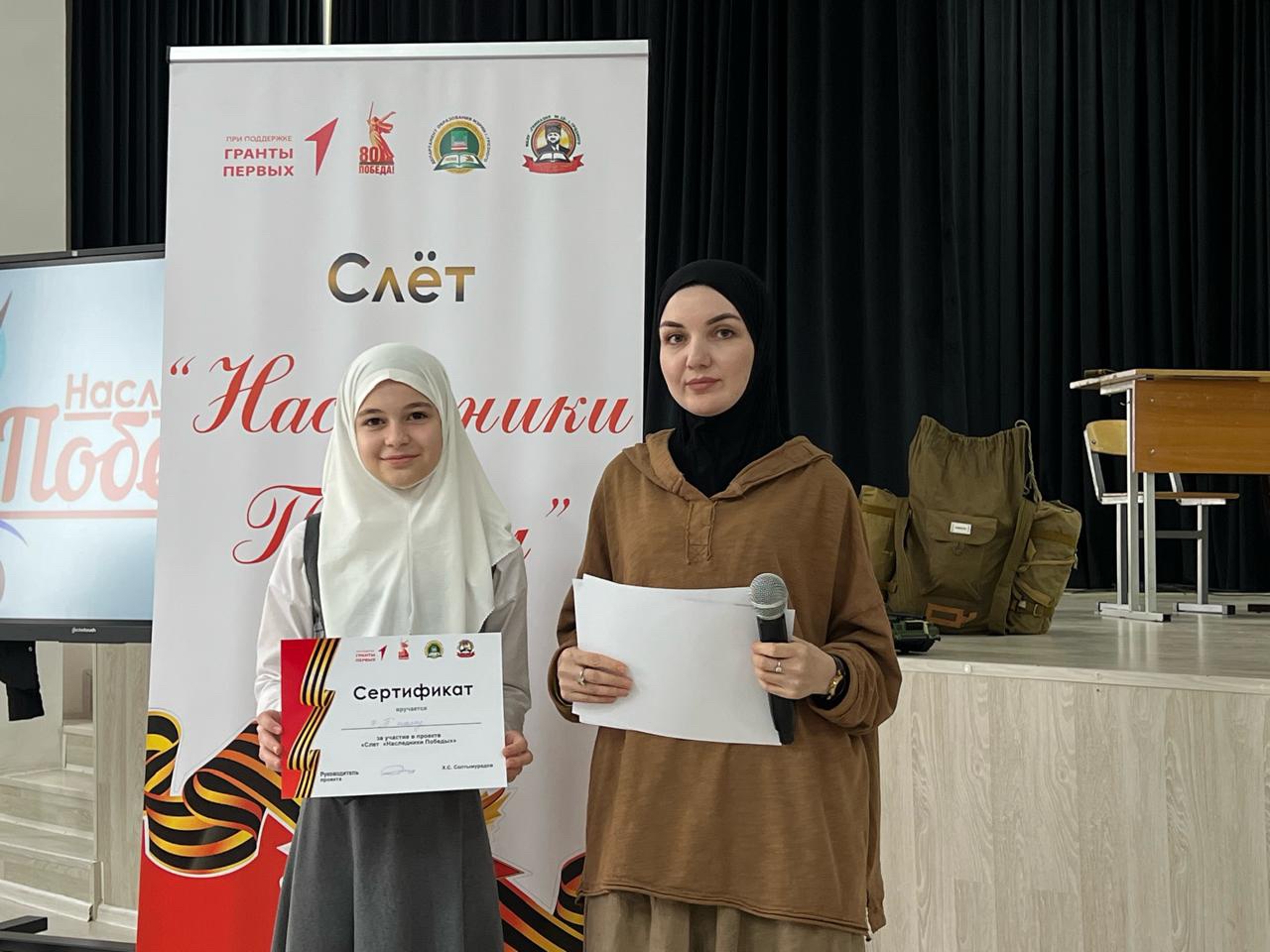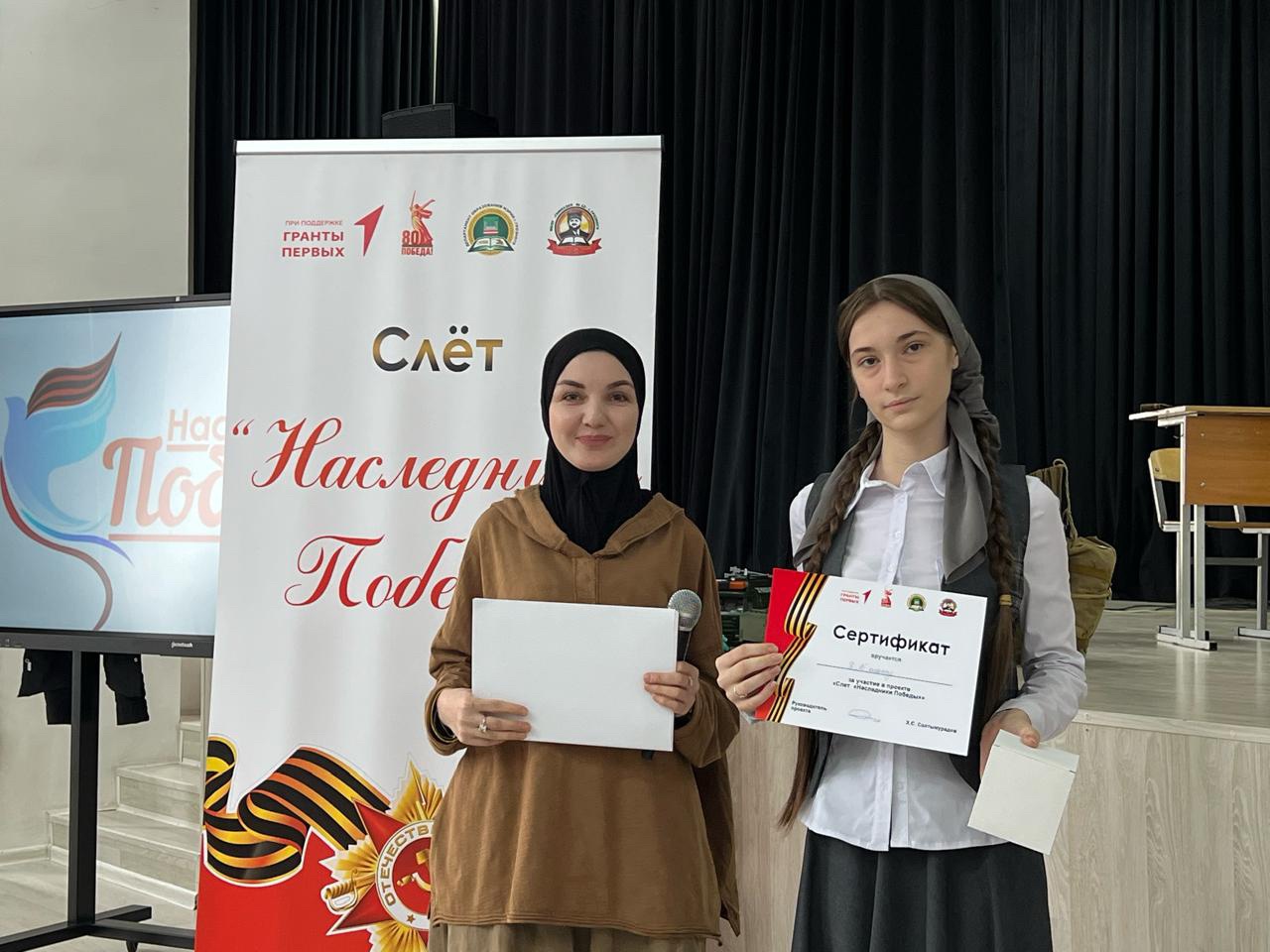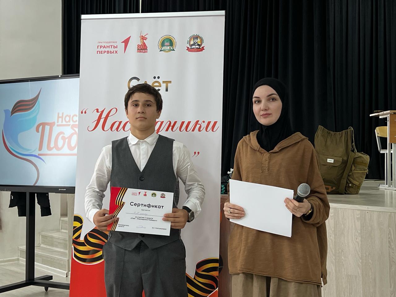 В МБОУ «Гимназия №12» г. Грозного состоялось торжественное закрытие проекта «Слёт «Наследники Победы», который реализуется при грантовой поддержке Движения Первых.